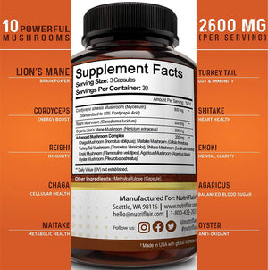 COMPLEJO MUSHROOM PERFECTO DE LA POTENCIA MÁS ALTA - Nuestras mejores cápsulas de hongos contienen 2600 mg de hongos orgánicos