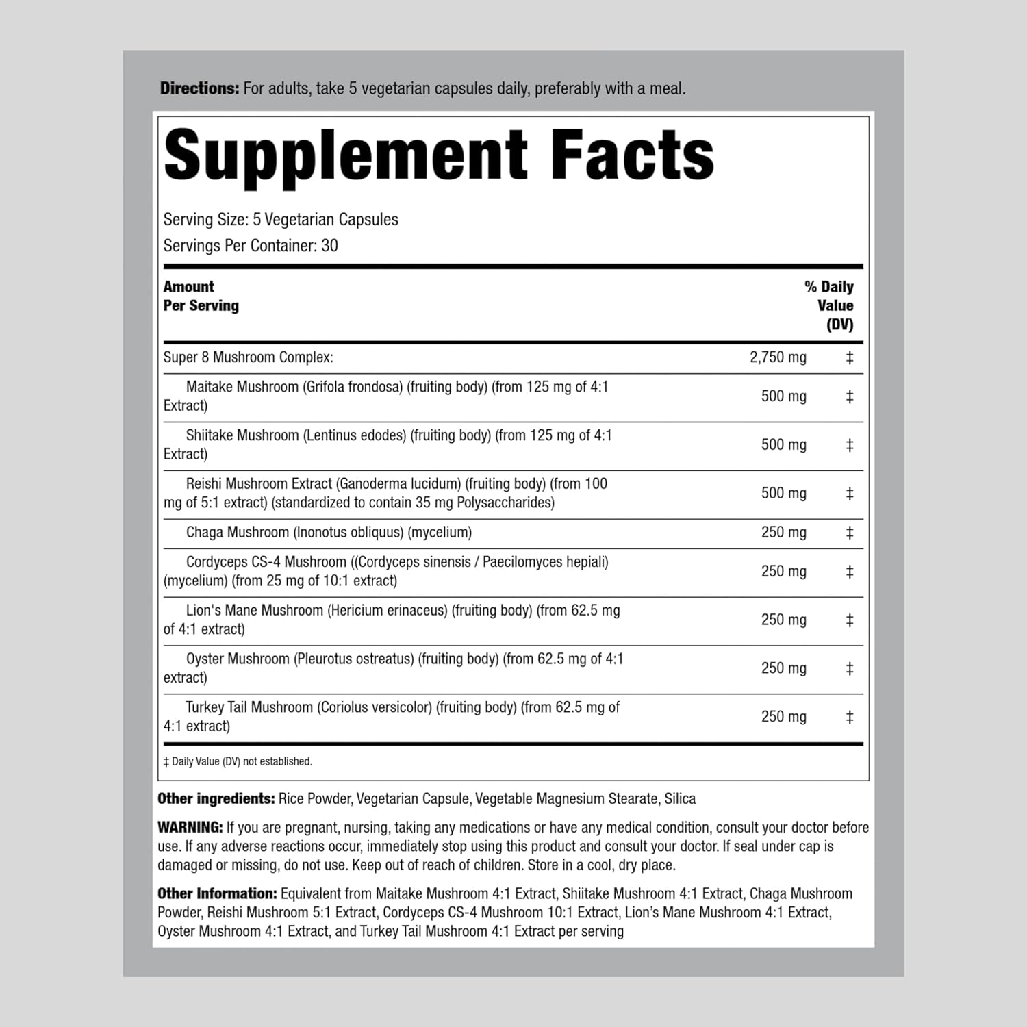 El complejo de extracto de 8 hongos de Piping Rock cuenta con una mezcla formulada por expertos de extractos concentrados y naturales de hongos. Están disponibles en cápsulas vegetarianas y no son OMG, sin gluten, trigo, levadura, leche, lactosa, soja, colores artificiales, sabores, edulcorantes o conservantes.