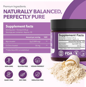 - Proporción óptima de mio-inositol y D-Chiro inositol 40:1: apoya el equilibrio hormonal, la función ovárica y la salud metabólica. Diseñado para promover los ciclos menstruales regulares y el bienestar reproductivo para las mujeres que buscan optimizar la fertilidad y el bienestar general.