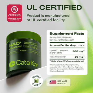 NAD + RESVERATROL LIPOSOMAL CATAKOR 500 MG 60 CAPSULAS VEGANO NO GMO