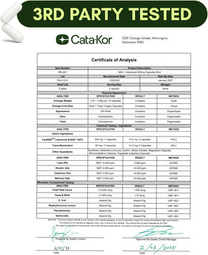 Probado en los Estados Unidos: Nuestro suplemento de NAD, Resveratrol es probado por terceros en los Estados Unidos para garantizar su pureza y eficacia. Certificado disponible bajo petición. Vuelve a sentirte lo mejor posible con NAD+ suplemento booster hoy.