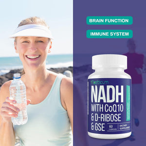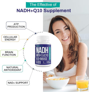 NADH y CoQ10 son coenzimas naturales para crear NAD+ y ATP que son esenciales para el metabolismo básico, la respiración y la descomposición de azúcares y grasas. NADH puede suministrar energía ATP al cerebro, nervios, músculos, corazón y todos los demás órganos y es una gran adición a cualquier estimulación de NAD+. Además, la D-ribosa es un compuesto esencial en el metabolismo energético que sirve como ATP.