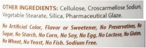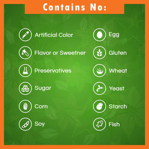 Probado en laboratorio de terceros para pureza y calidad. Sin color, sabor o edulcorante, sin conservantes, sin azúcar, sin leche, sin maíz, sin soja, sin huevo, sin lactosa, sin gluten, sin trigo, sin levadura, sin pescado. Sin sodio.