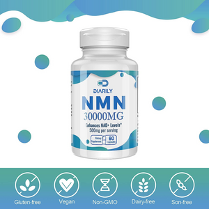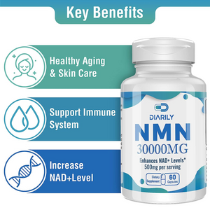 Alta pureza y alto contenido: Diary NMN contiene 30.000 mg de NMN por botella, con una pureza de hasta el 99 %. Cada cápsula contiene 500MG NMN, cada botella de 60 cápsulas puede proporcionar 60 días de suplementación. NMN se convierte en tu suplemento diario, solo toma 1 cápsula al día, podrás mantener tu cuerpo o mente en óptimas condiciones.