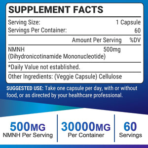 NMNH MONONUCLEÓTICO DE DIHIDRONICOTINAMIDA 500 MG 60 CÁPSULAS VEGETALES NO GMO GLUTEN FREE UCESSUYY