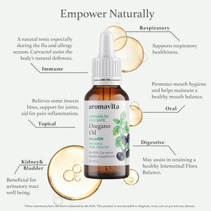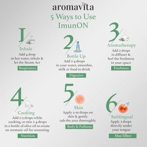 Explora el patrimonio de la naturaleza con Aromavita ImunON, un aliado atemporal para la fuerza de tu cuerpo. Desbloquea el apoyo natural para el bienestar digestivo, respiratorio, urinario y articular. Un camino directo para fortalecer su inmunidad incluso en tiempos difíciles.