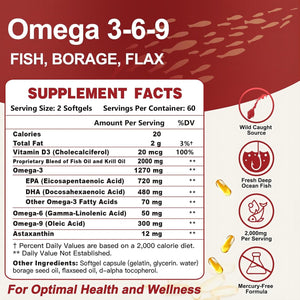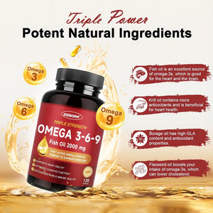 El suplemento Omega 3 6 9 de Zebora con 2000 mg de aceite de pescado y vitamina D es una fórmula integral para el apoyo cardiovascular, cerebral y óseo. La adición de vitamina D mejora la absorción de calcio y ayuda en la salud ósea. Con 120 cápsulas blandas, este producto es ideal para quienes buscan un balance perfecto de ácidos grasos esenciales y nutrientes para la salud general.