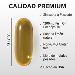 Incluye 1296mg EPA + 864mg DHA de alta concentración.