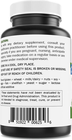 No exceda la dosis recomendada. Las madres embarazadas o lactantes, los niños menores de 18 años y las personas con afecciones médicas conocidas deben consultar a un médico antes de usar este o cualquier suplemento dietético. Descontinúe el uso y consulte a un médico si ocurre una reacción adversa. NO LO USE SI EL SELLO DE SEGURIDAD SE DAÑA O FALTA. GUARDAR EN UN LUGAR FRESCO Y SECO.