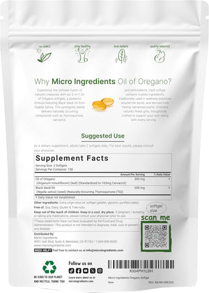 · Benefíciese de un generoso suministro para 150 días de aceite de orégano recién cosechado con un potente carvacrol natural de 165 mg y el muy apreciado aceite de semilla negra con timoquinona natural.