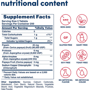ENZIMA DE PAPAYA + CLOROFILA 90,000 USP 600 TABLETAS SIN GMO VEGANO AMERICAN HEALTH