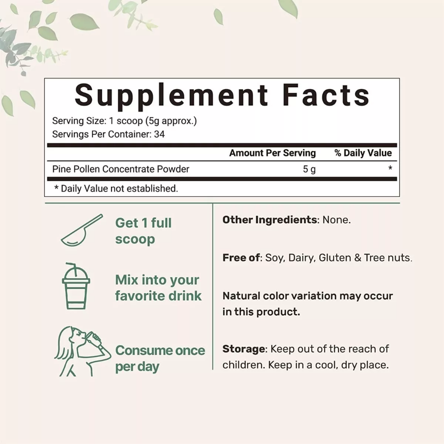 Apoyo a la salud sexual y reproductiva: El polen de pino mejorara la libido, aumentar la fertilidad y mejorar la salud del sistema reproductivo tanto en hombres como en mujeres.