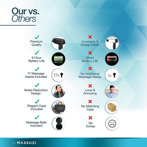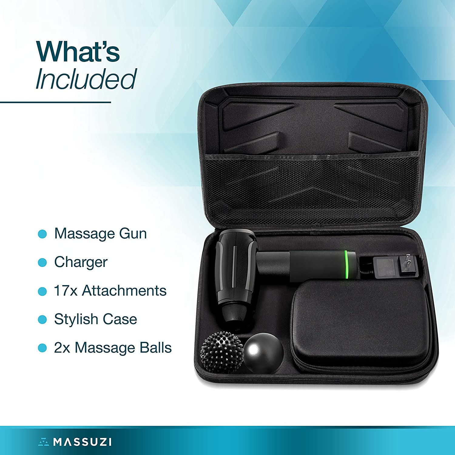 LEA EL MANUAL DETENIDAMENTE: lea atentamente el manual de instrucciones proporcionado con el tejido profundo de la pistola de masaje Massuzi by Fitpulse antes de usarlo. Si tiene alguna pregunta o problema con respecto a la pistola masajeadora, no dude en enviar un mensaje