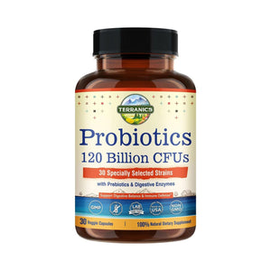 PROBIOTICO CON PREBIOTICOS Y ENZYMAS 120 BILLONES CFU 30 CEPAS 30 CAPSULAS SIN GMO TERRANICS