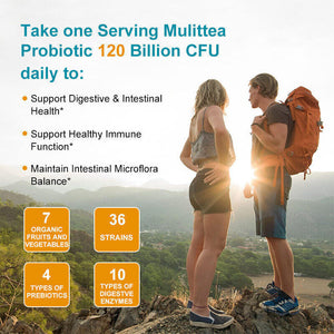 PROBIÓTICO + PREBIÓTICOS Y ENZIMAS 120 BILLONES CFU 36 CEPAS 120 CÁPSULAS MULITTEA