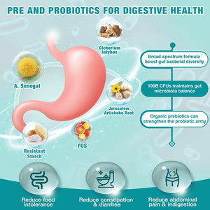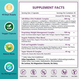 ••• Probióticos 5 en 1 para la salud general 90 VEGGIE CAPSULAS : nuestros probióticos para mujeres y hombres contienen 100 mil millones de CFU, COMPLEJO DE CONTROL DE PESO PROPIETARIO, FIBRA PREBIÓTICA, COMPLEJO DE FRUTAS Y VERDURAS y VITAMINA B para mantener su cuerpo saludable. El amplio espectro de probióticos contiene 30 cepas para respaldar la diversidad de cepas intestinales