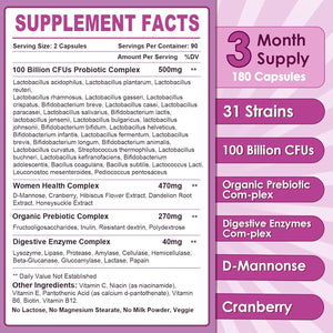 PROBIOTICOS CON ENZIMAS DIGESTIVAS Y COMPLEJO URINARIO PARA MUJERES 31 CEPAS 100 BILLONES CFU 180 CAPSULAS VEGETALES SIN GMO NATURE TARGET
