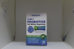 PROBIOTICOS CON ENZIMAS DIGESTIVAS EN POLVO 3 EN 1 15 CEPAS 100 BILLIONES CFU 30 SOBRES VEGANO SIN GMO ZEBORA