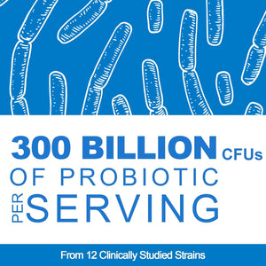 300 mil millones es nuestra fórmula patentada que incluye mayores recuentos de cepas activas. Una porción diaria ofrece 300 mil millones de UFC de 12 cepas de probióticos clínicamente estudiadas, científicamente verificadas para hinchazón, evacuación intestinal saludable y digestivo, para que te sientas cómodo y menos hinchado. El suplemento probiótico es la mejor opción para darle poder sobre su salud intestinal para que pueda vivir cómodamente.