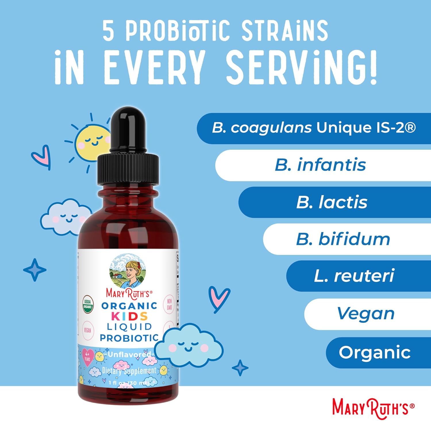 PROBIOTICOS LIQUIDO INFANTIL 5 CEPAS 30 ML SIN GMO VEGANO MARY RUTH'S