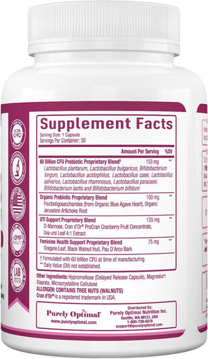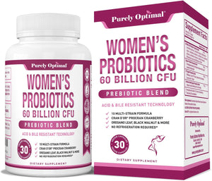 PROBIÓTICOS PARA MUJERES 60 BILLONES CFU 10 STRAINS 30 CÁPSULAS NO GMO PURELY OPTIMAL