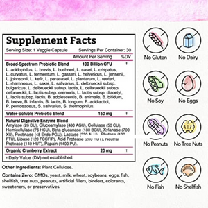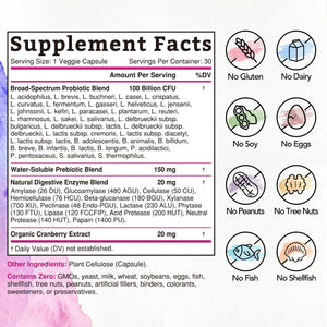 PROBIOTICOS CON ENZIMAS DIGESTIVAS Y CRANBERRY PARA MUJERES 35 CEPAS 100 BILLONES CFU 30 CAPSULAS BONAWELL
