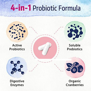 Probióticos para mujeres combina cepas probióticas vivas de amplio espectro, varios tipos de fibra prebiótica soluble, una variedad de diferentes enzimas digestivas y arándanos orgánicos para flora intestinal saludable – Apoyo inmunológico para mujeres y salud urinaria, vaginal y digestiva.