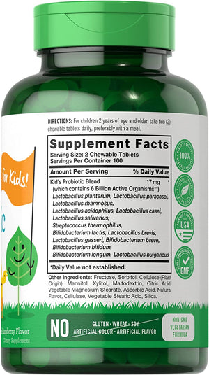 PROBIOTICOS PARA NIÑOS CARLYLE 14 CEPAS 6 BILLONES CFU 200 TABLETAS MASTICABLES