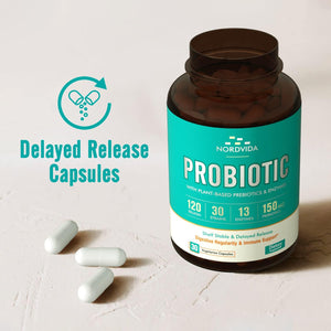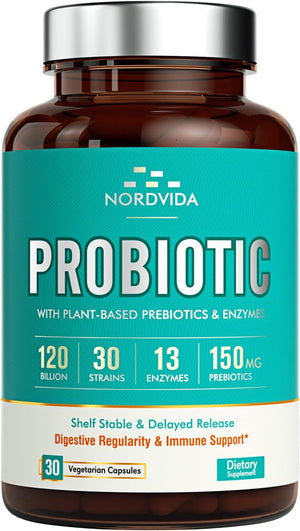 PROBIOTICOS Y PREBIOTICOS ENZIMAS 120 BILLONES CFU 30 CEPAS 30 CAPSULAS VEGETALES VEGANO NORDVIDA
