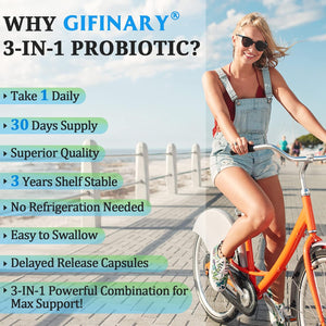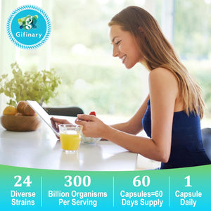 Práctico y de gran valor: Probiótico Gifinary Once Daliy 300 mil millones de UFC, los probióticos potentes para mujeres y hombres. Conveniencia de solo 1 cápsula por día, excelente relación calidad-precio por 1 frasco para 2 meses de suministro. Estable, no requiere refrigeración y nuestra tecnología de liberación retardada permite que el probiótico sobreviva al ácido estomacal y llegue al intestino. Esta es una opción conveniente para quienes desean tomar sus probióticos en casa, de viaje o mientras están en movimiento.