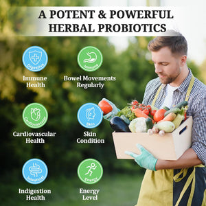 Combinación potente 3 en 1 para obtener los mejores resultados: 24 cepas de probióticos de amplio espectro + 15 prebióticos orgánicos + hierbas. En lugar de utilizar una cepa cultivada de probióticos, nuestros probióticos son básicamente una variedad diversa de bacterias más prebióticos provenientes de hierbas cultivadas orgánicamente. Enriquecidos con vitaminas y minerales, energía, salud intestinal y digestiva, hinchazón e indigestión, sistemas inmunológico y metabólico y salud de todo el cuerpo.