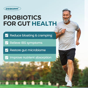 PROBIOTICOS + PREBIOTICOS PARA HOMBRES 60 BILLONES CFU 10 CEPAS 90 TABLETAS NO GMO ZEBORA