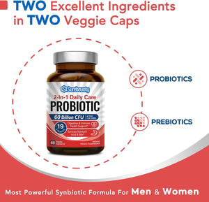 Fórmula sinbiótica clínicamente investigada para hombres y mujeres: nuestro probiótico de cuidado diario 2 en 1 fácil de tragar presenta una combinación única de 19 cepas probióticas diferentes más fibra prebiótica basada en investigaciones clínicas. Brinda 60 mil millones de CFU de probióticos aptos para principiantes