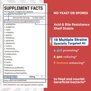 PROBIOTICOS 19 CEPAS 60 BILLONES CFU 60 CAPSULAS VEGETALES SUREBOUNTY