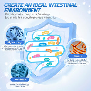 Fuerza máxima de 90 mil millones de UFC: 90 mil millones de UFC, 18 cepas clínicamente probadas y 3 prebióticos orgánicos. Los probióticos en nuestra fórmula profesional pueden nutrir las bacterias beneficiosas existentes en el tracto digestivo y proporcionar otras bacterias beneficiosas para lograr una protección equilibrada.