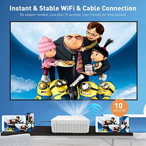 En comparación con otros proyectores WiFi, hemos simplificado los pasos de conexión y lo hemos equipado con la última tecnología WiFi, haciéndolo más amigable y estable para el usuario. Además, también puede usar el cable de carga USB del fabricante original para sincronizar sus dispositivos inteligentes Android e iOS, y no es necesario comprar cables adicionales. Puede configurar su propio cine en casa libremente y ver películas, programas de televisión y fotos, jugar videojuegos en cualquier lugar.
