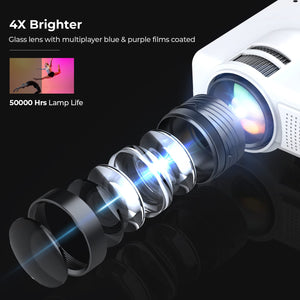 Proyector Full HD nativo 1080P 7500L de alto brillo. Con resolución nativa de 1920 x 1080, un brillo notable de 7500 L y una alta relación de contraste dinámico de 10000:1, el proyector de video TENKER Q5 1080P proporciona imágenes nítidas y detalladas para cine en casa y al aire libre. Al combinar una innovadora lente de 7 capas de vidrio de alta refracción, el proyector Native 1080P ofrece las imágenes más acogedoras y una precisión de color excepcional para garantizar la mejor experiencia de video.