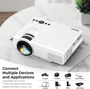 Conexión múltiple para todo el entretenimiento en el hogar, el proyector de video de cine en casa TENKER Q5 1080p también está equipado con puerto HDMI/USB/AV/VGA/SD que puede ser compatible correctamente con TV stick, smartphone, tableta, computadora portátil, videojuegos, memoria USB, tarjeta micro USB, etc. para ampliar tu entretenimiento en casa para más diversión y colorido.