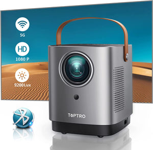 - El proyector portátil TR23 está equipado con un chip WiFi 5G avanzado, que puede evitar eficazmente interferencias de señal, garantizar una señal estable y una velocidad de transmisión rápida, te ofrece una experiencia de transmisión de video en línea mucho más suave y sin retrasos. Y el mini proyector TR23 soporta la función Bluetooth 5.0, lo que permite la conexión con varios altavoces Bluetooth y auriculares sin complicaciones.