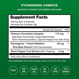 ¿ EXTRACTO DE PRIMA PINTADO PATENTADO - Nuestras cápsulas de Pycnogenol vienen cargadas con estrellas de circulación adicional, concentrado de raíz de remolacha, pimienta de cayena y extracto de semilla de uva. Se ha demostrado clínicamente que todos estos ingredientes mejoran el flujo sanguíneo, lo que le permite continuar durante más tiempo y con más fuerza cuando más lo necesita.