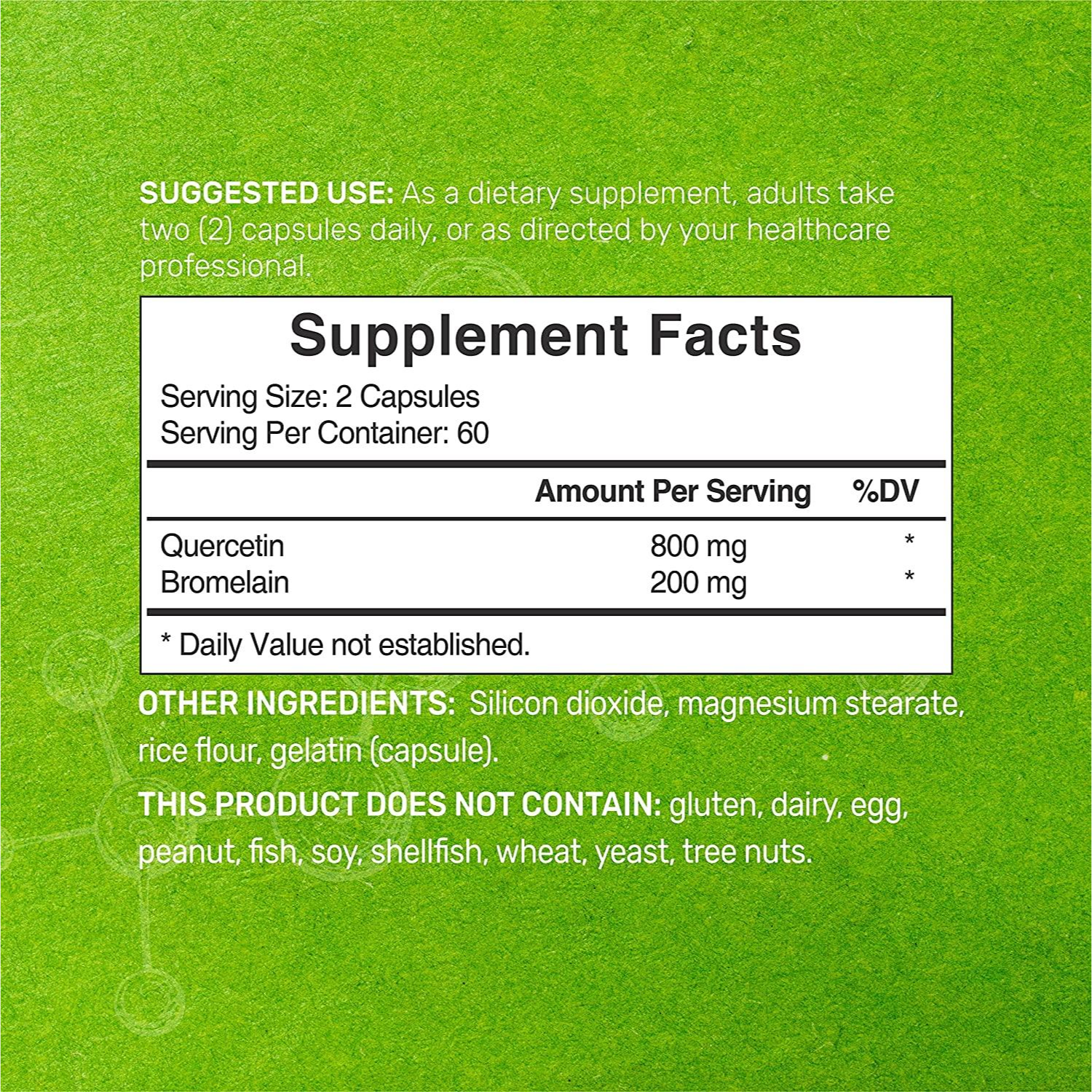 Fórmula súper fuerte - Quercetina pura 800 mg más + 200 mg de bromelina,