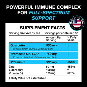 EL MEJOR POTENCIADOR INMUNOLOGICO DEL MERCADO QUERCETINA + BROMELINA + VITAMINA C + VITAMINA D3 + ELDELBERRY & ZINC 1300MG 120 CAPSULAS OROLINE NUTRITION INMUNE BOOST!!!