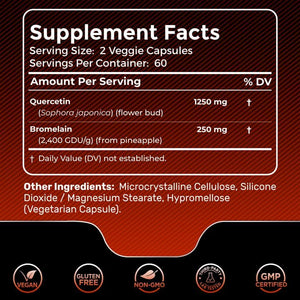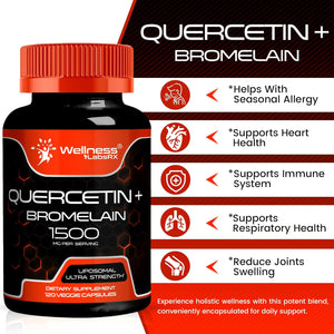 QUERCETINA CON BROMELINA 1500 MG WELLNESS LABSRX 120 CAPSULAS VEGETALES VEGANO NO GMO