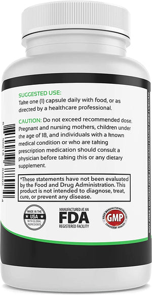 No exceda la dosis recomendada. Las madres embarazadas o lactantes, los niños menores de 18 años y las personas con afecciones médicas conocidas deben consultar a un médico antes de usar este o cualquier suplemento dietético. Descontinúe el uso y consulte a un médico si ocurre una reacción adversa. NO LO USE SI EL SELLO DE SEGURIDAD SE DAÑA O FALTA. GUARDAR EN UN LUGAR FRESCO Y SECO.