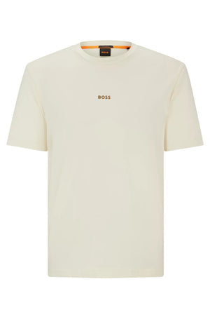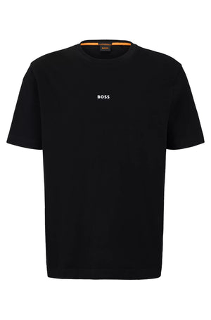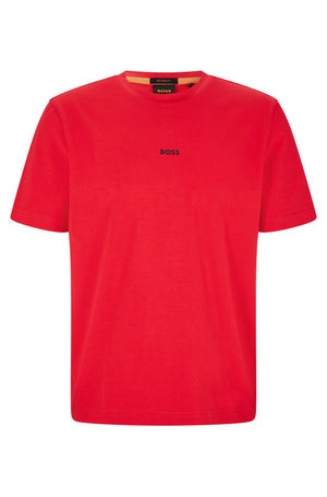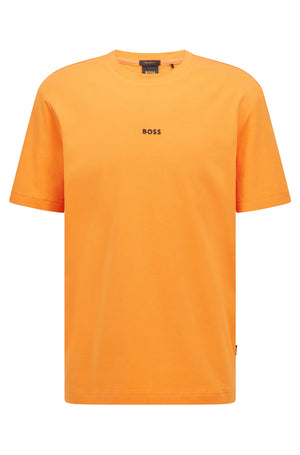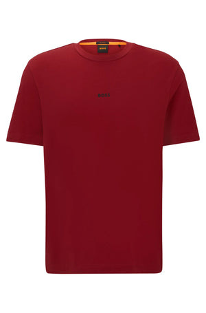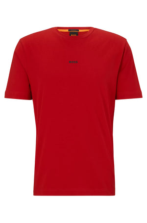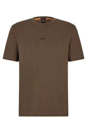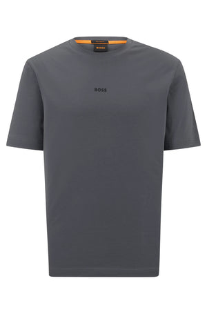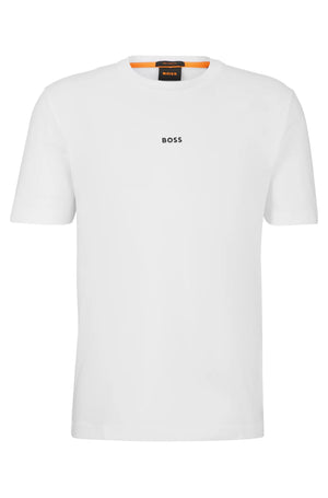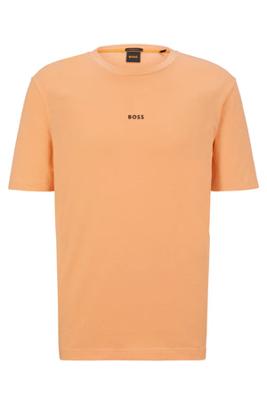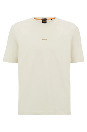 Esta camiseta de manga corta de BOSS Menswear, estampada con un logotipo de siete capas en el centro del pecho, está confeccionada en algodón suave mezclado con elastano.