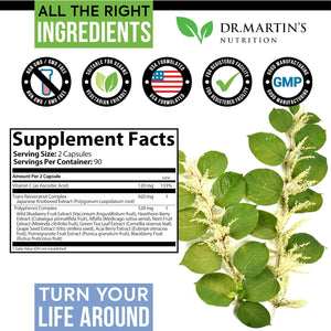 INGREDIENTES PODEROSOS: Nuestro trans-resveratrol proviene de la hierba japonesa. También le ofrecemos 12 hierbas poderosas para promover la energía, el bienestar general y la salud, entre ellas, semilla de uva, fruto de acai, polvo de mora, fruto de granada, arándano, fruto de noni, baya de espino, té verde y hoja de alfalfa. Vea nuestra imagen científica para ver los beneficios de cada hierba para usted.