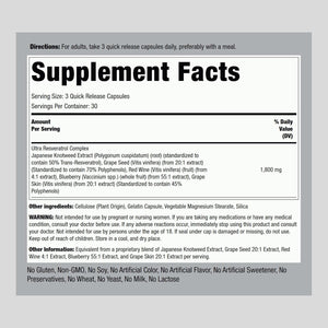 RESVERATROL COMPLEX 1800 MG 90 CÁPSULAS NO GMO PIPING ROCK