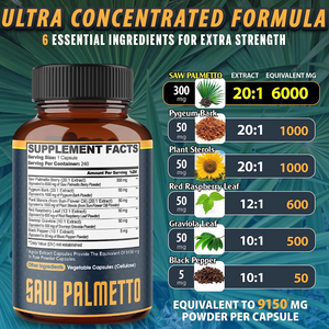 Este extracto de alta calidad contiene niveles concentrados de ingredientes activos, incluyendo a los fitoesteroles y los ácidos grasos. Elegimos utilizar los extractos estandarizados en este suplemento para garantizar la calidad y pureza de los ingredientes herbales activos. El proceso de estandarización también asegura una absorción máxima de los ingredientes ‘activos’ encontrados en cada extracto de Saw Palmetto.. Este suplemento también es apto para dietas vegetarianas y veganas.