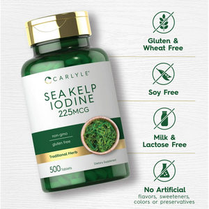 Fórmula marina: cada tableta ofrece 225 mcg de yodo de Kelp, el 150% de tu valor diario