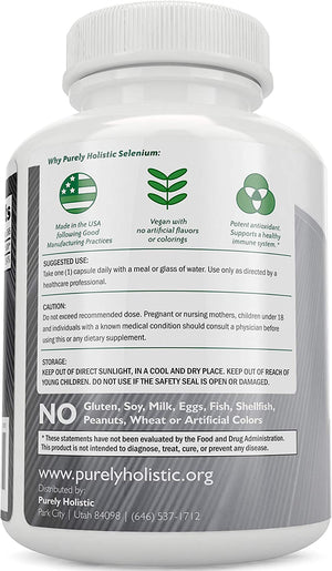 SELENIO 200 MCG 365 CAPSULAS VEGANO SIN GMO PURELY HOLISTIC